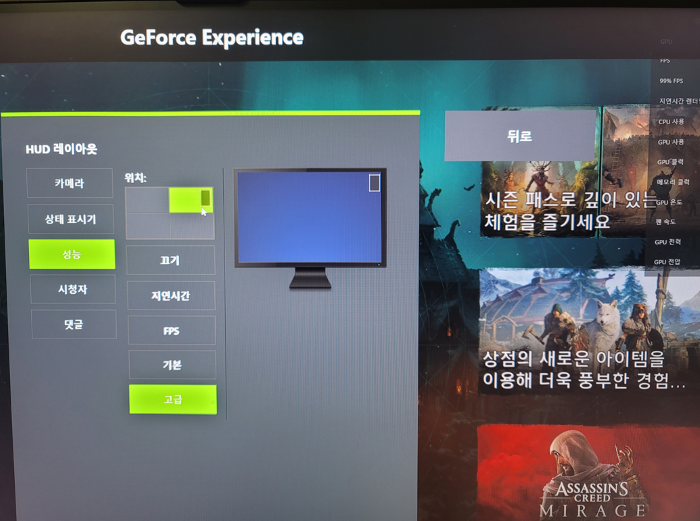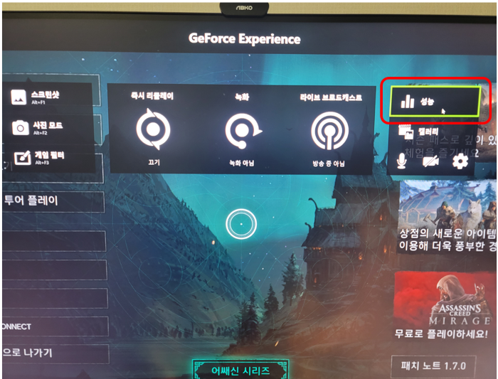 Geforce Experience(지포스 익스피리언스)가 깔려있어야 합니다.